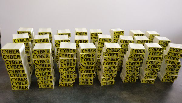 Samenkoop van stickertjes (± 2½ × 7½ cm) met het ontwerp van https://cyber.equipment/ (PDF) (CC-BY-NC).