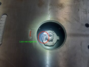 Let er tijdens het los-draaien op dat de LOCK VOLLEDIG INGEDRUKT is, en niet half (hiervan gaat de machine stuk). Indien de frees (en dus ook de spantang) warm is geworden zal de frees niet los te krijgen zijn. De oplossing hiervoor is koelen (dit mag met de compressor). Gebruik in ieder geval GEEN geforceerde kracht, dit sloopt de freesmachine.
