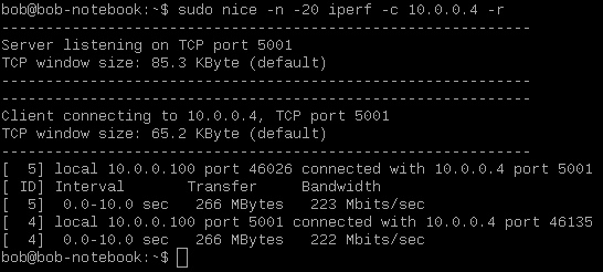 I ran two bidirectional tests with iperf, an individual and a simultaneous one.