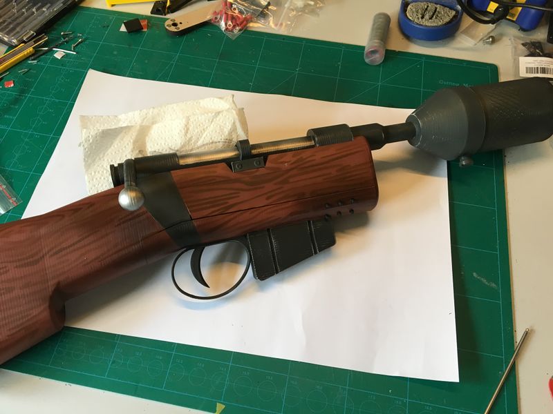 Uiteraard mag een Ion Blaser niet ontbreken. Deze heb ik ge-3d-print. Er zijn een aantal knopjes aangebracht om geluiden te maken (gekoppeld via bluetooth met een mp3 speler die aan een riem gedragen word onder het costuum).