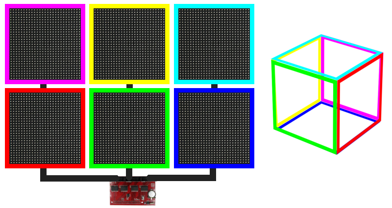 Mapping a flat image to a cube is not that hard, the real challenge is writing software that wraps animations over the correct edges. So far, I have came up with two solutions to this problem: