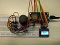 The color and brightness can be controlled via an analog joystick and a user interface on a 160x80 OLED display. The display shows a HSV color spectrum with both gradients to dark and light colors. To select a new color, move the cursor with the joystick to the desired color.