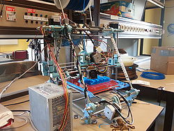 Like the Model T, the Prusa Mendel improves on a previous design by being more streamlined for manufacture. The Prusa Mendel is a simpler remix of the original Mendel. By default, it uses printed bushings instead of regular bearings, though options to substitute inexpensive lm8uu linear bearings or other types of bearings or bushings are available. The current version uses six 608 bearings in total, three for the E axis, one for the X axis and two for the Y axis. The 624 bearings are gone altogether.